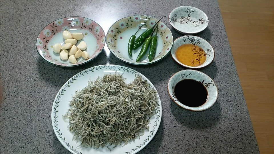 멸치150g, 청양고추4개, 마늘 10개, 간장 4스푼, 올리고당 4스푼, 맛술 1스푼반 필요합니다.